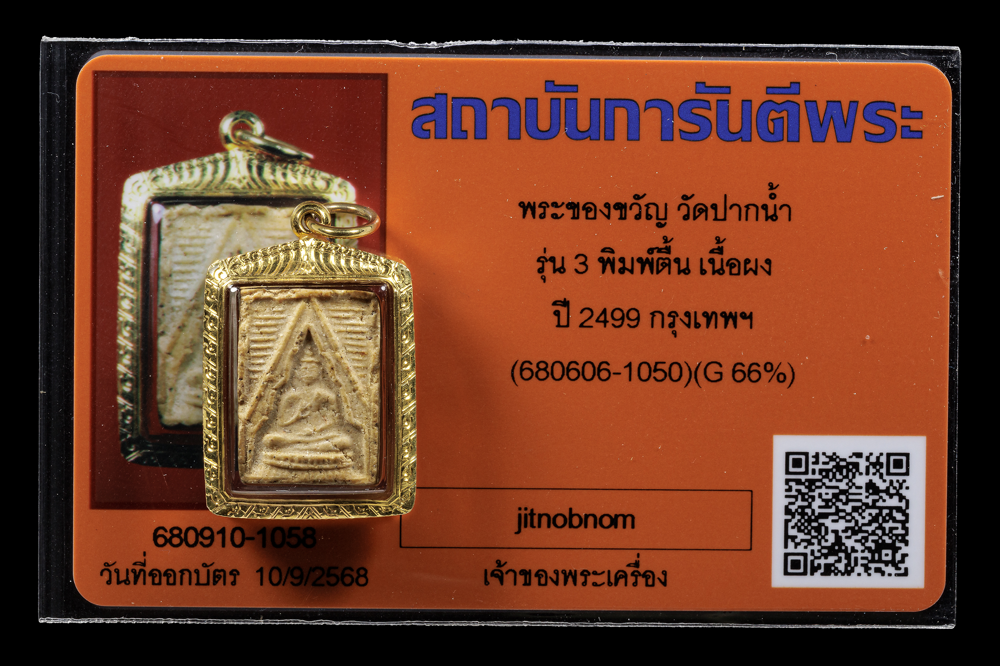 พระผงของขวัญ รุ่นสาม (รุ่น3) พิมพ์ตื้น ปี2499 วัดปากน้ำ พร้อมเลี่ยมทอง พร้อมบัตร Gpra