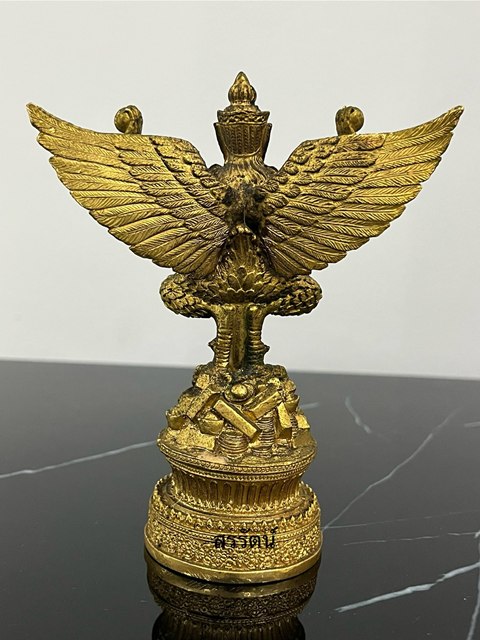 พญาครุฑ พระอาจารย์วราห์ วัดโพธิทอง รุ่นเหยียบเงินเหยียบทอง พิมพ์เล็ก เนื้อทองเหลืองกะไหล่ทอง ปี 2540 กรุงเทพฯ (ขนาดสูง 4.8 นิ้ว) พร้อมบัตร Gpra