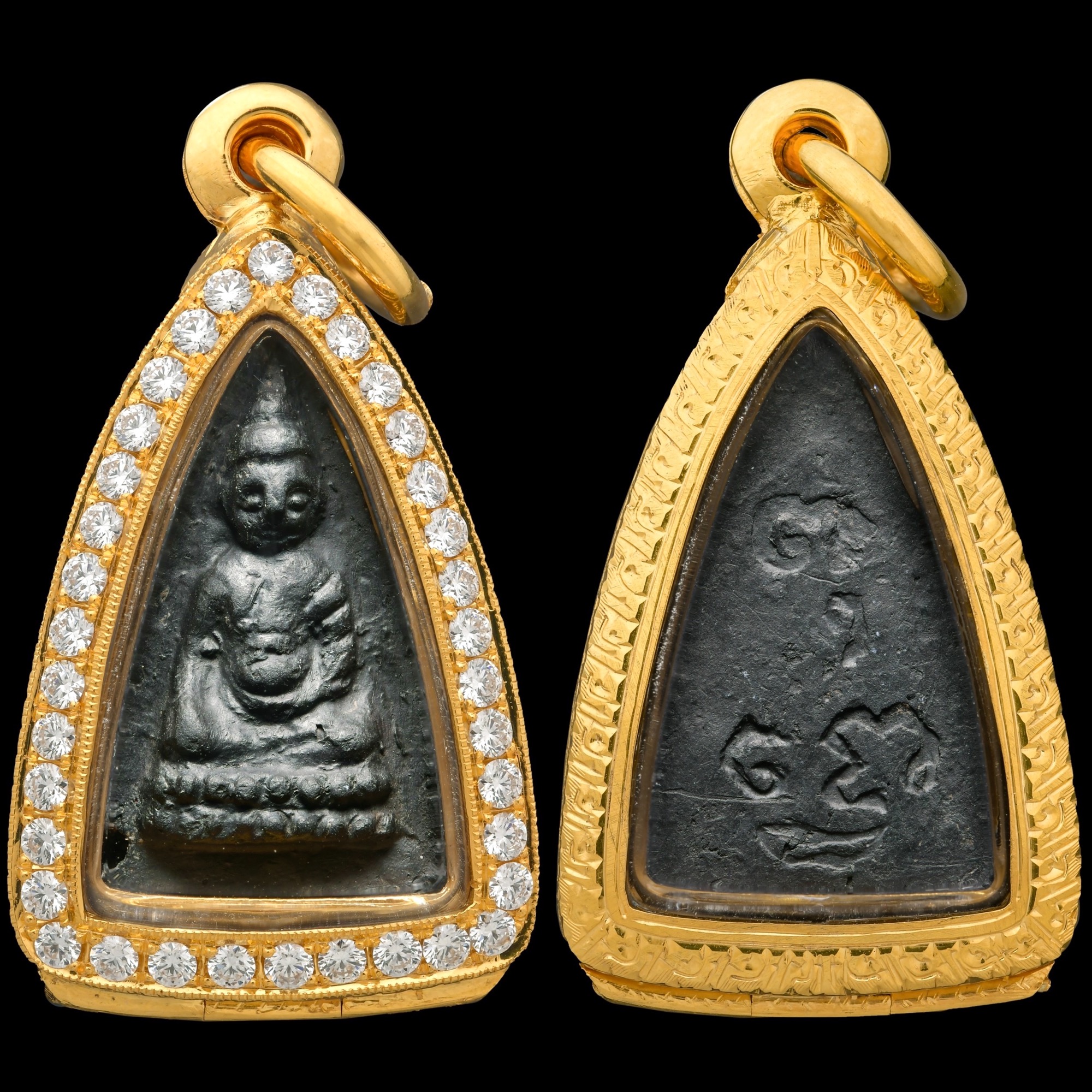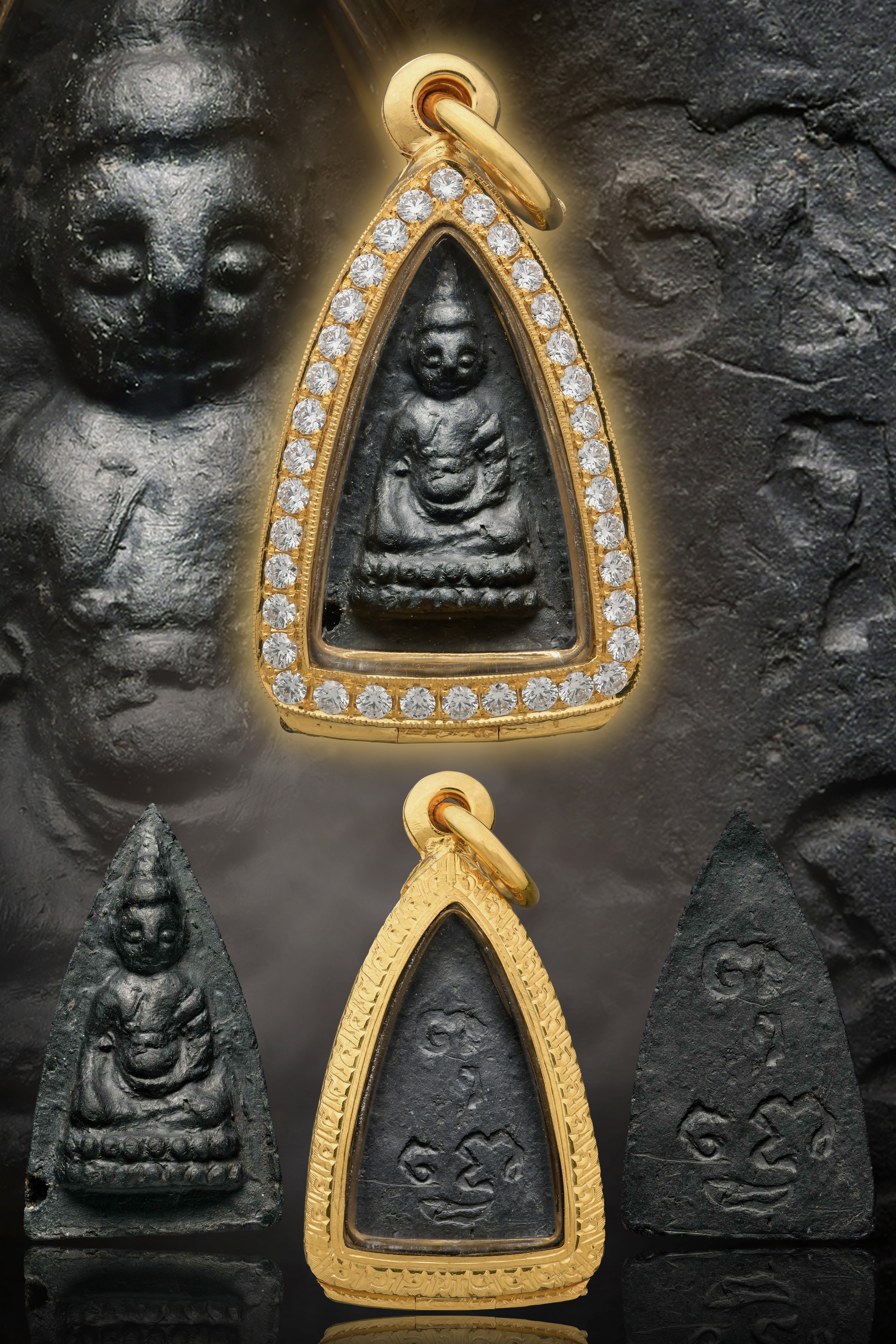 พระพุทโธน้อยพิมพ์เล็ก เนื้อผงใบลานแขนตุ่ม หน้าตุ๊กตา สวยงามมากพิมพ์นิยมพร้อมตลับเพชรแท้