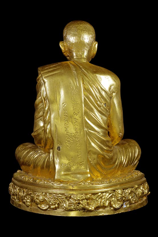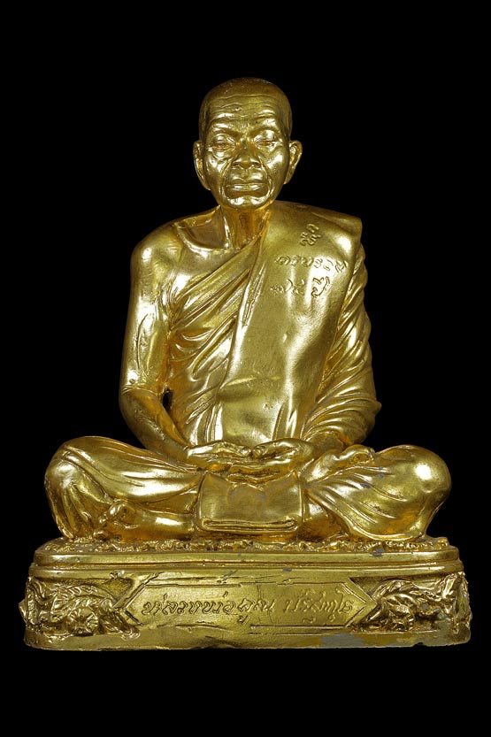 | พระบูชารูปเหมือนนั่งสมาธิ 5 นิ้ว รุ่น อายุครบรอบ 74 ปี ( เนื้อโลหะทาทอง กรรมการ ) พ.ศ. 2539 ( ใต้ฐานฝังตลับสีผึ้งมีเกษาตะกรุดทองคำฝังท้องแขน , แปะจีวรปั้มหมึกชื่อหลวงพ่อคูณ ปริสุทฺโธ , ฝังยาเส้นหลวงพ่อคูณ , ปั้มตราวัดแต่จาง ) |