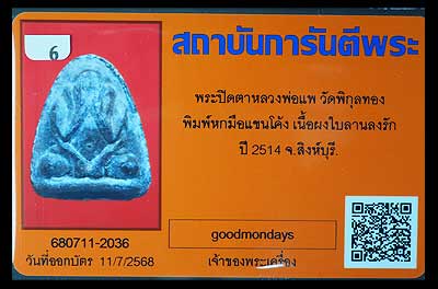 | พระปิดตา เนื้อผงใบลาน ปี2514 หลวงพ่อแพ วัดพิกุลทอง |