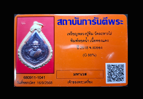 เหรียญหยดน้ำ หลวงปู่ทิม ปี18