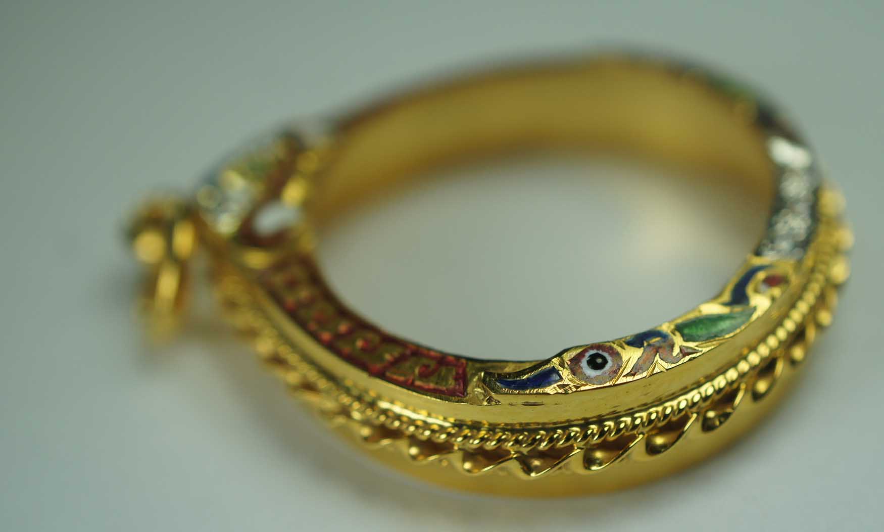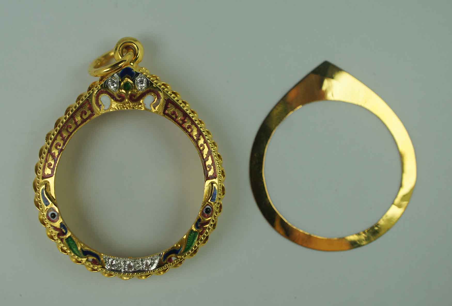 กรอบทองคำ ลงยา ยกซุ้ม หัวสิงห์ ฝังเพชร ข้างเกลียวโ