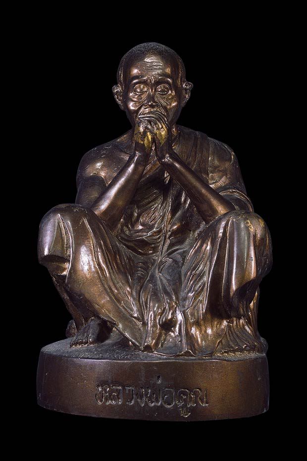 พระบูชารูปเหมือนนั่งอธิษฐานจิต ( กุมมือเป่าเสก , 5 นิ้ว ) หลวงพ่อคูณ ปริสุทฺโธ วัดบ้านไร่ ( เนื้อโลหะ )