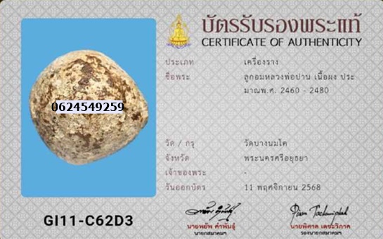ลูกอมยันต์เกราะเพชร หลวงพ่อปาน วัดบางนมโค พร้อมบัตรสมาคม