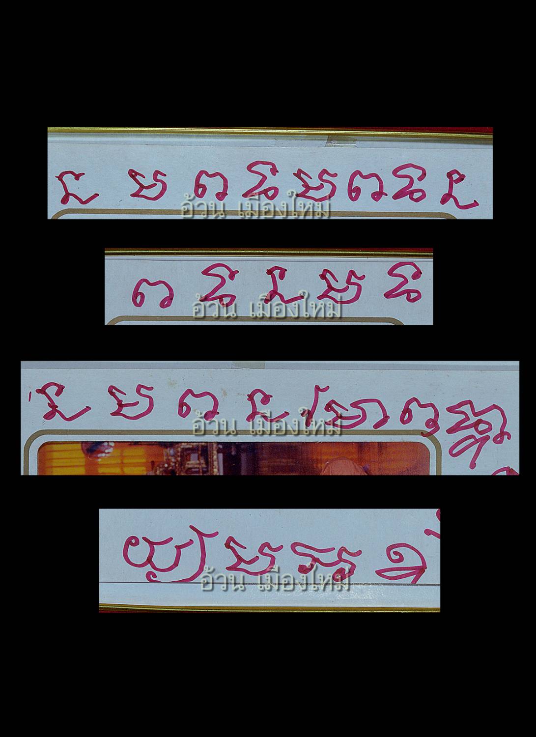 รูปถ่าย 5x 8 นิ้ว หลวงพ่อคูณ ปริสุทฺโธ วัด บ้านไร่ / จารยันต์อักขระ ลายมือ ลพ.คูณ\r\nนะ มะ พะ ทะ\r\nมะ พะ ทะ นะ\r\nพะ ทะ นะ มะ\r\nทะ นะ มะ พะ\r\nนะ โม พุท ธา ยะ มะ อะ อุ