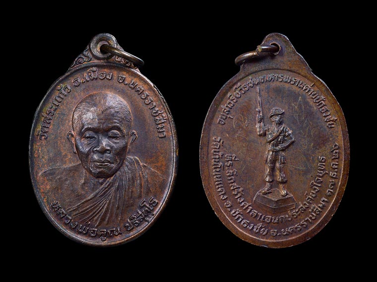 | เหรียญ ( ชุดทองคำ ) หลวงพ่อคูณ ปริสุทฺโธ วัดบ้านไร่ รุ่น ทหารพราน ที่ระลึกสร้างศาลาเอนกประสงค์ยงใจยุทธ วัดบ้านโนนแดง จ.นครราชสีมา พ.ศ.2526 ( กล่องเดิม ) // เนื้อเงิน จารยันต์อักขระ หน้าเหรียญ \" มะอะอุ อุอะมะ \" , หลังเหรียญ \" นะมะพะทะ อุอะมะ \" ลายมือหลวงพ่อคูณ // เนื้อทองแดง จารยันต์อักขระหลังเหรียญ \" นะมะพะทะ มะอะอุ \" ลายมือหลวงพ่อคูณ // ผู้จัดสร้าง : พลเอกชวลิต ยงใจยุทธ ได้มอบหมายให้พันเอกวันชัย อัมพุนันท์ ( ยศในขณะนั้น ) ผู้บังคับการค่ายทหารพรานปักธงชัย เป็นผู้รับหน้าที่ในการจัดหาทุนสร้างศาลาเอนกประสงค์ ถวายวัดโนนแดง // วัตถุประสงค์ : เพื่อสมทบทุนหาทุนทรัพย์มาจัดสร้างศาลาเอนกประสงค์ ถวายวัดโนนแดง เพื่อให้ใช้ประโยชน์ต่างๆโดยไม่ต้องมีการตัดไม้ทำลายป่า อันเป็นทรัพยากรธรรมชาติที่ควรอนุรักษ์ไว้ให้ลูกหลานสืบต่อไป // ประวัติค่ายทหารพราน : หน่วยทหารพรานจัดตั้งขึ้นเมื่อวันที่ 18 กรกฎาคม พ.ศ. 2521 ตามแนวคิดที่กำหนดไว้ว่า ทหารพราน คือ อาสาของประชาชน หรือเรียกว่านักรบประชาชน มีวัตถุประสงค์จัดตั้งเพื่อต่อสู้กับกองโจรพรรคคอมมิวนิสต์แห่งประเทศไทย และขับไล่กองโจรลงจากที่มั่นบนภูเขาในภาคตะวันออกเฉียงเหนือ เป็นแนวคิดของพล.อ. ชวลิต ยงใจยุทธ ซึ่งขณะนั้นเป็นผู้อำนวยการศูนย์ปฏิบัติการกองทัพบกที่กองบัญชาการกองทัพไทยในกรุงเทพมหานคร หน่วยทหารพรานประกอบด้วยทหารใหม่จากพื้นที่ซึ่งได้รับผลกระทบจากการก่อการกำเริบของคอมมิวนิสต์ ทหารใหม่นั้นจะเข้ารับการฝึกเข้มข้นทั้งหมด45 วัน ได้รับแจกอาวุธสมัยใหม่ และถูกส่งกลับไปยังหมู่บ้านของตนเพื่อดำเนินปฏิบัติการกองโจรต่อคอมมิวนิสต์ //++รายการ++//(1).พระกริ่งชุดทองคำ เนื้อทองคำ ฐานปิดแผ่นทองคำ , เนื้อเงิน ฐานปิดแผ่นทองคำ , เนื้อนวโลหะ ฐานปิดแผ่นเงิน ( รันหมายเลข ) 19 ชุด ( ข้อมูลเบื้องต้นอาจมีการเปลี่ยนแปลง ) // (2).พระกริ่งเนื้อเงิน ฐานปิดเงิน ( ตอก พ ) 99 องค์ // (3).พระกริ่งเนื้อเงิน ฐานติดแผ่นเงิน ( รันหมายเลข ) 526 องค์ ( ข้อมูลเบื้องต้นอาจมีการเปลี่ยนแปลง ) // (4).พระกริ่งทองแดง ฐานปิดแผ่นทองแดง ( ตอก พ ) 2000 องค์ ( แจกทหาร ) // (5).พระกริ่งทองแดง ฐานปิด แผ่นทองแดง 2526 องค์ ( ประชาชนร่วมทำบุญ ) // (6).พระผงนาคปรก ฝังตะกรุด 1000 องค์ // (7).พระผงรูปเหมือน ฝังตะกรุด 1000 องค์ // (8).พระผงสังกัจจายน์ ฝังตะกรุด 1000 องค์ // (9).พระปิดตา ฝังตะกรุด 1000 องค์ // (10).เหรียญชุดทองคำ เนื้อทองคำเนื้อเงิน , เนื้อทองแดง 19 ชุด ( ข้อมูลเบื้องต้นอาจมีการเปลี่ยนแปลง ) // (11).เหรียญรูปเหมือน 10000 เหรียญ // (12).พระชุด 5 องค์ ( เหรียญ , ผงรูปเหมือน , ผงนาคปรก , ผงปิดตา , ผงสังกัจจายน์ ) 5000 ชุด // (13).พระบูชาสังกัจจายน