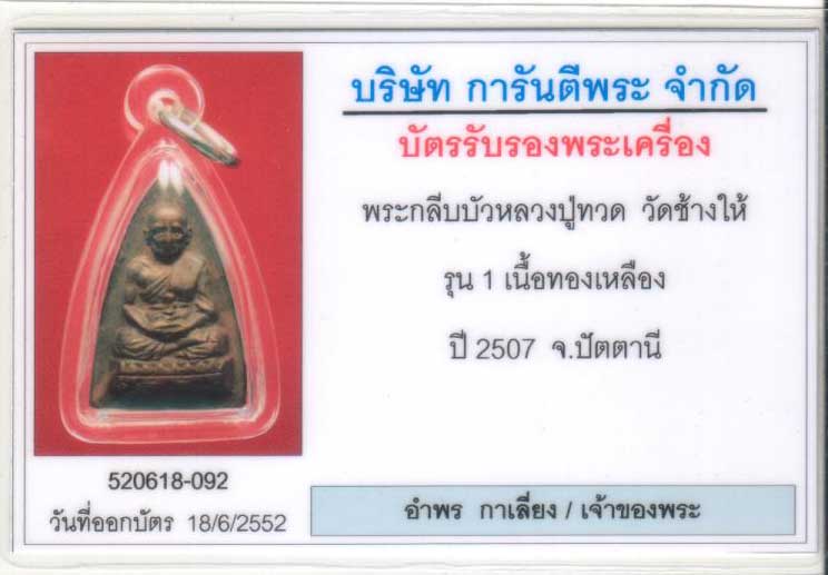 หลวงปู่ทวด กลีบบัว หลัง รุน๑