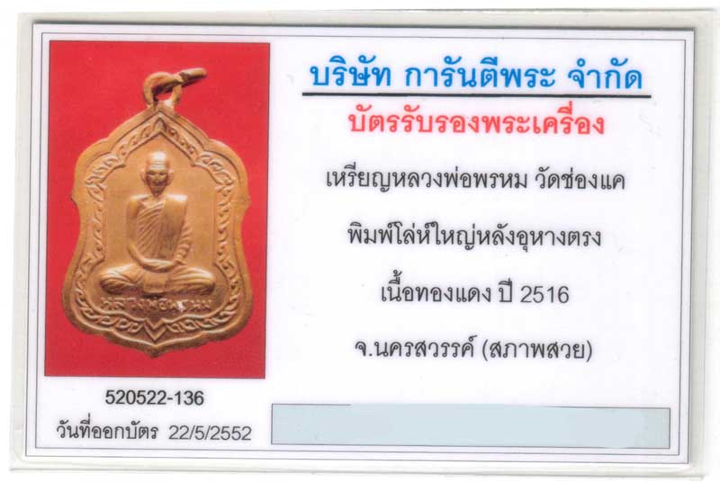 เหรียญโล่ใหญ่ หลวงพ่อพรหม บัตรสภาพสวย