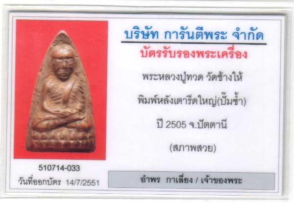 หลวงปู่ทวด ปั๊มซ้ำปีกกว้าง บัตรสภาพสวยครับ