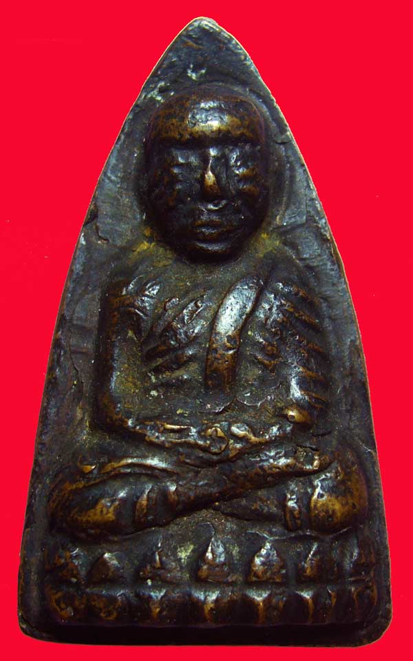 หลวงปู่ทวด พิมพ์หลังเตารีดปั๊มซ้ำ ปี2505 สภาพสวย ดูง่าย ดิ้นเบ้ายังมีให้เห็น ซึงปกติก่อนนำมาปั๊มซ้ำจะทำความสะอาดก่อน ซึ่งปั๊มซ้ำส่วนใหญ่ จะไม่ค่อยมีดินเบาให้เห็นชัดเจนแบบนี้ เพราะทำความสะอาดออกก่อน ยาดำเดิมๆ แน่นอน เป็นธรรมชาติดีมากๆ มีรอยกระแทกชัดเจน เส้นรัศมีกระจายรอบองค์พระ ปั๊มแทบจะไม่โดนบริเวณใบหน้าและลำตัว สภาพโดยรวมดูง่ายมาก มีเสน่ดูไม่เบื่อ พระเต็มสูตรแบบนี้ หายากครับ