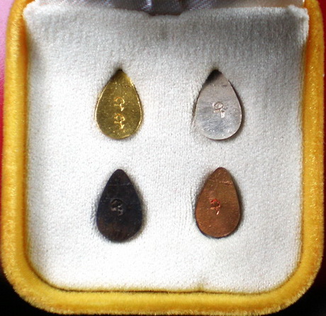 พระพิมพ์หยดน้ำ ยอดขุนพล หลวงปู่โต๊ะ เป็นพระที่สร้างขึ้นเพื่อหารายได้สมทบทุนสร้างโบสถ์วัดถ้ำสังห์โตทอง จ.ราชบุรี ( เป็นวัดที่หลวงปู่สร้างขึ้นและมักไปนั่งวิปัสสนากัมมัฎฐานอยู่เป็นประจำ ) ขนาดองค์พระเล็กมาก สูง 1.2 ซม.เท่านั้น เหมาะสำหรับเด็ก และผู้หญิงไว้คุ้มครองตัว........ องค์ที่นำลงในชมรมเป็นชุดกล่องเดิม มีเนื้อทองคำ เงิน นวโลหะ และทองแดง สภาพสวย พระนาสิก(จมูก)โด่ง ตอกโค้ดด้านหลังชัดเจน(ทองคำตอก 2 โค้ด)