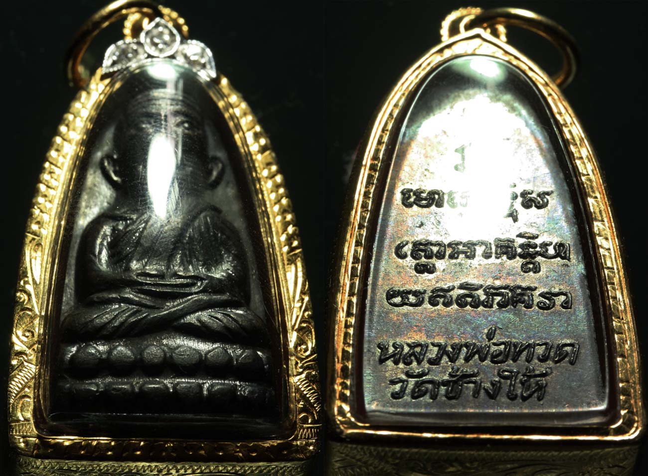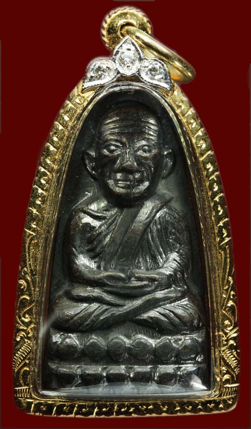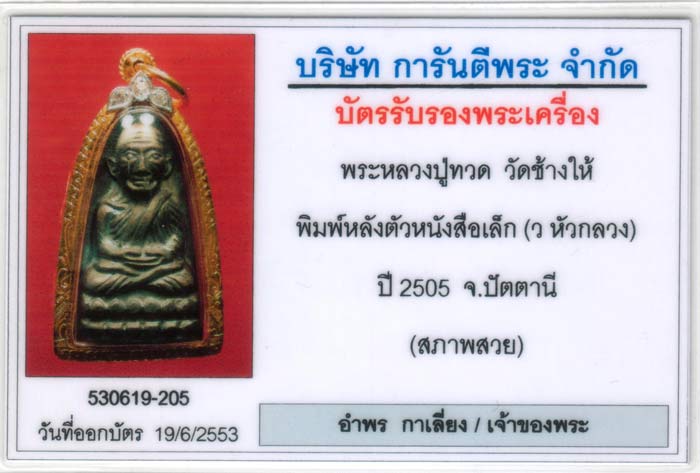 หลวงปู่ทวด พิมพ์หลังหนังสือพิมพ์เล็ก ปี2505 เลี่ยมทองฝั่งเพชร สภาพสวยเดิมมากๆ รมดำเดิมๆ ด้านหลังออกโซนรมมันปู(ไม่ค่อยมีให้เห็นสำหรับผิวรมดำโซนมันปู) ผิวปรอทยังเคลือบอยู่เพียบ พร้อมบัตรสภาพสวยครับ