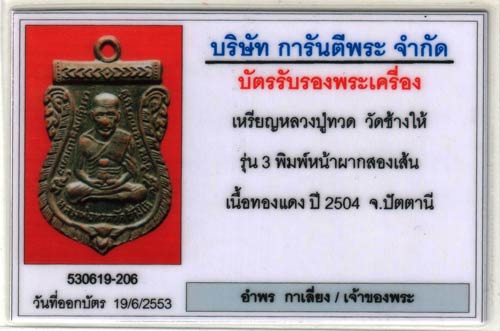 เหรียญหลวงปู่ทวด รุ่นสาม พิมพ์ลึกนิยม พิมพ์หน้าผากสองเส้นประคตข้างเดียว สภาพยังสมบูรณ์ รมดำหายไปบางส่วนเท่านั้น พระยังสวยคมลึก พระพิมพ์หายากในทำเนียบ พระหายากของหลวงปู่ทวดครับ
