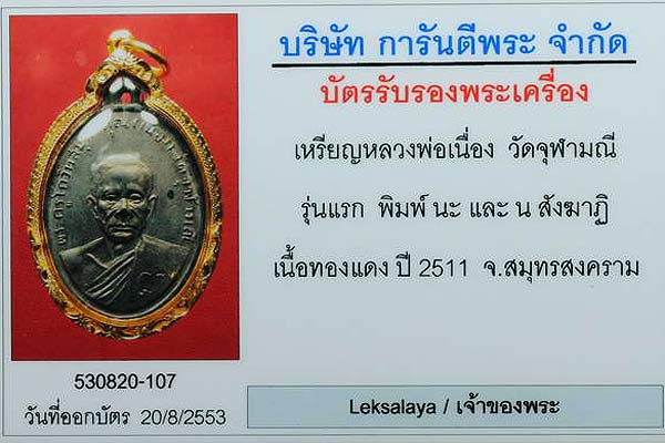 เหรียญหลวงพ่อเนื่อง วัดจุฬามณี รุ่นแรก (2โค๊ต) พิมพ์ นะ และ น สังฆาฏิ เนื้อทองแดง ปี 2511 พร้อมเลี่ยมทองยกซุ้ม