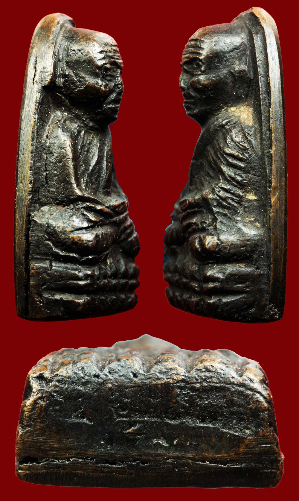 หลวงปู่ทวด วัดช้างให้ หลังเตารีดพิมพ์กลางปั๊มซ้ำ ปี2505 องค์นี้เป็นพิมพ์หน้าใหญ่(นิยม)พระสภาพดูง่ายมากๆ เนื้อแน่นเนียน คราบยาดำแห้งเก่าต้องแบบองค์นี้ ไม่มีการไปบิ้วโดยทำยาดำใหม่แน่นอน คราบดินเบ้ามาตรฐานเห็นอยู่อีกมาก รอยตะไบเก่าถึงยุค รอยปั๊มกระแทกบริเวณผนังด้านหลังเห็นชัด องค์อื่นไม่รู้ องค์นี้ไม่แท้ไม่ได้แน่นอนครับ พิมพ์กลางปั๊มซ้ำแท้ 100% ต้ององค์นี้ครับ นานๆเห็นพระแบบนี้สักครั้งต้องรีบจับเข้ามาครับ ไม่สวยมากแต่ดูง่ายมากๆ และเต็มสูตร ยาดำเต็มๆ ดินเบ้าเห็นชัด รอยตะไบถูกต้องและถึงยุค ตัวจริงชัดเจนไม่ยัดปีไม่ยัดพิมพ์แน่นอน