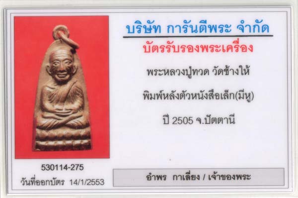 หลวงปู่ทวดพิมพ์หลังหนังสือมีหู ปี06 แบบที่2