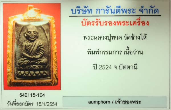 หลวงปู่ทวด เนื้อว่านปี2524 พิมพ์กรรมการ