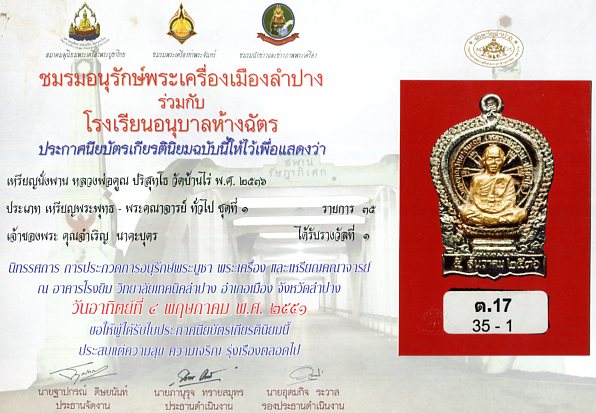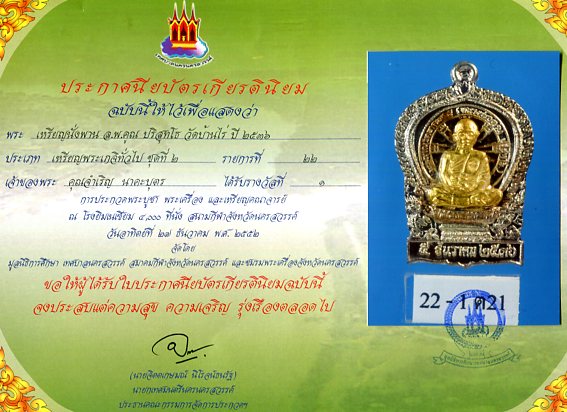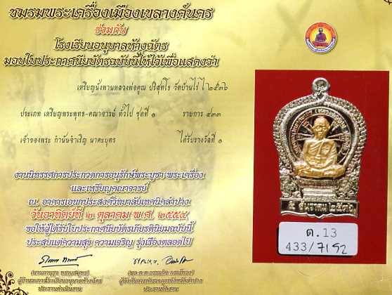 ใบประกาศชุดที่2ใบที่2ถึงใบที่5หลวงพ่อคูณนั่งพาน
