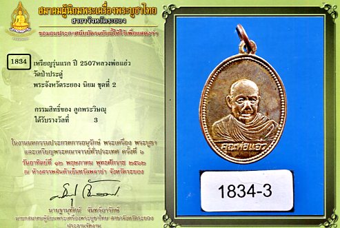 เหรียญหลวงพ่อแอ่ววัดป่าประดู่ปี2507หลวงปู่ทิมเสก |