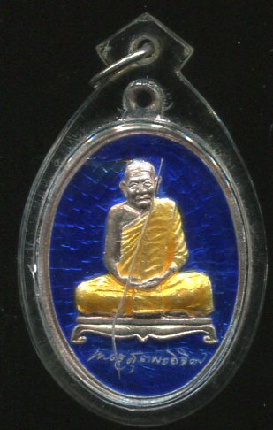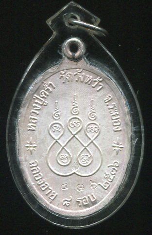 เหรียญแปดรอบลายเซนต์หลวงปู่คร่ำเงินลงยาสีน้ำเงิน