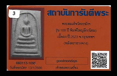 | สมเด็จวัดระฆัง พิมพ์ใหญ่ลึก 108ปี ปี2523 กรุงเทพ |