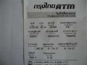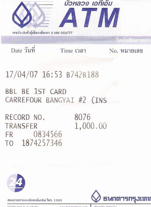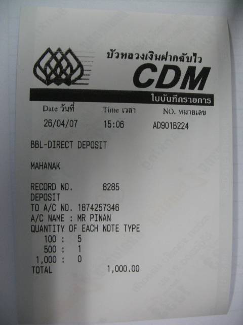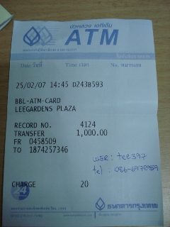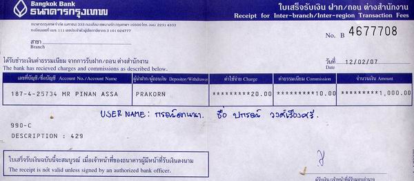 โอนเงินค่าธรรมเนียมเข้าธนาคารกรุงเทพฯ 1,000.09 บาท และได้ Fax สำเนาไปให้แล้วครับ
