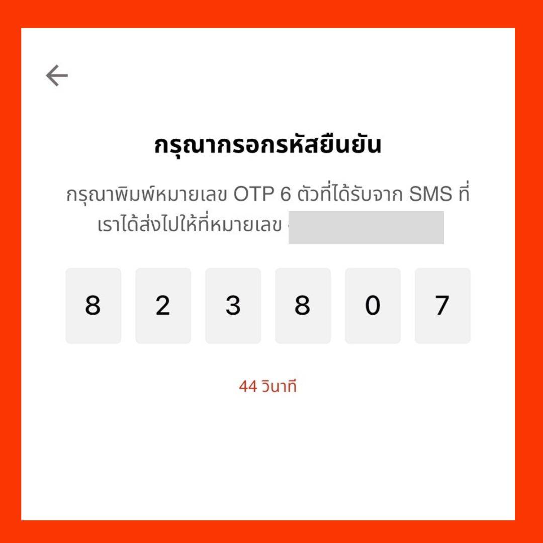 กรอกหมายเลข OTP 6 ตัวที่ท่านได้รับทาง SMS บนมือถือของท่าน