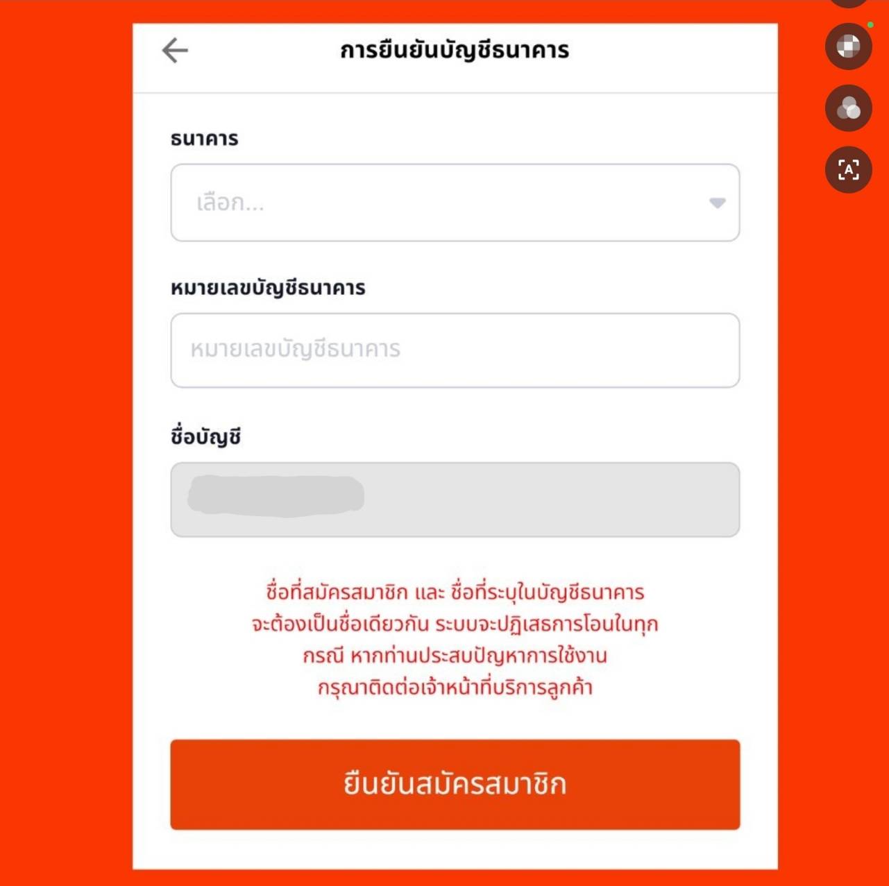 กรอกรายละเอียดบัญชีธนาคาร โดยชื่อเจ้าของบัญชีธนาคาร จะต้องตรงกับชื่อที่ใช้สมัครสมาชิก