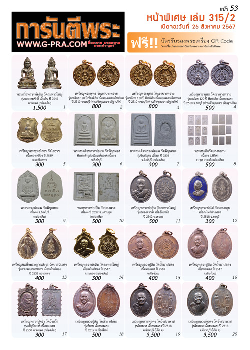 💥ขอเชิญเช่าบูชาพระเครื่องราคาถูกพิเศษ แถม บัตรรับรอง 1 ใบ ** หน้าพิเศษ 1 ( จำนวน 4 หน้า ) ของฉบับที่ 315 https://www.g-pra.com/magazine.php