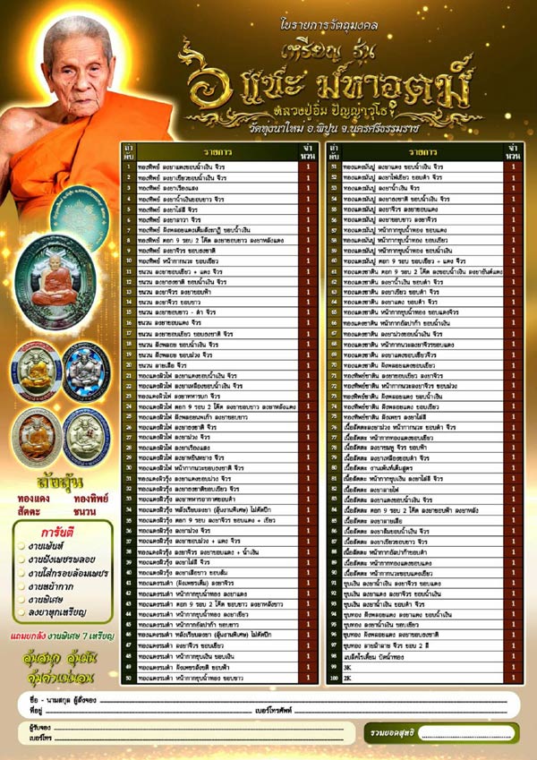 9. รายการลุ้น /ทองแดง /ทองทิพย์/สัตตะ /ชนวน ลุ้นละ 120 บาท