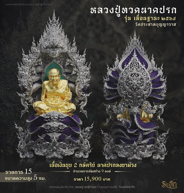 15.เนื้อเงินชุบ 2 กษัตริย์ นาคปรกลงยาม่วง บูชา 15,900