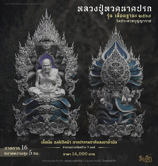 16.เนื้อเงิน องค์เปิดผิว นาคปรกลมซาตินลงยาน้ำเงิน บูชา 14,000