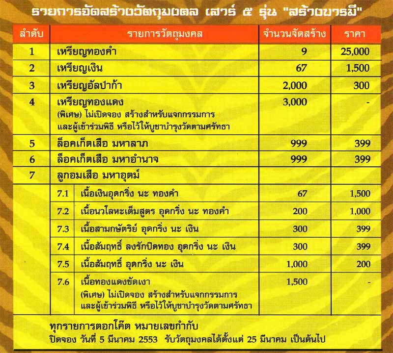 วันที่ ๒๐ มีนาคม ๒๕๕๓ (เสาร์๕ วันปลุกเสก)