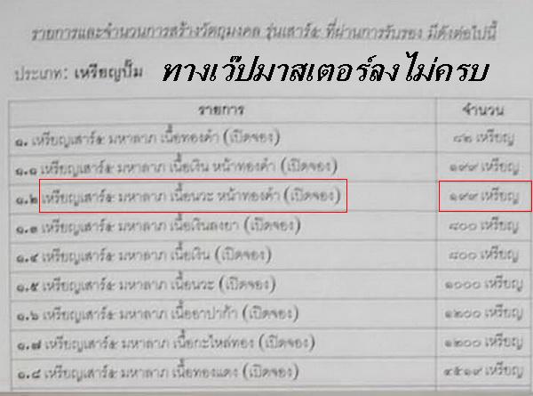 เรื่อง รายการและจำนวนวัตถุมงคล รุ่นเสาร์๕ ที่ผ่านการรับรอง จากทางวัดหนองหลวง มีดังนี้
