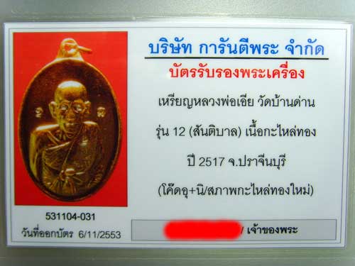 หมายเหตุ - กรณีพระเครื่องในรายการชนะการประมูลที่มีบัตรรับรองพระเครื่องอยู่แล้ว ถ้าผู้ตั้งประมูลพระเครื่องส่งพระเครื่องพร้อมบัตรฯมาตรวจสอบและเปลี่ยนชื่อในบัตรฯใหม่ให้ผู้ชนะประมูล จะคิดค่าธรรมเนียมฯนี้ 100 บาท + ค่าจัดส่งพระให้ผู้ชนะประมูล 100 บาท และได้รับการยกเว้นค่าธรรมเนียมบัตรฯ 100 บาท ( เป็นอัตราเดิมของปี 2553 ) ดังนั้นหากชนะประมูลพระที่มีบัตรฯอยู่แล้ว ผู้ตั้งประมูลจะต้องแนบค่าธรรมเนียมฯมา 200 บาทเท่าเดิมเหมือนปี 2553