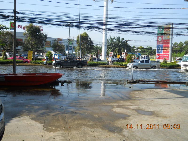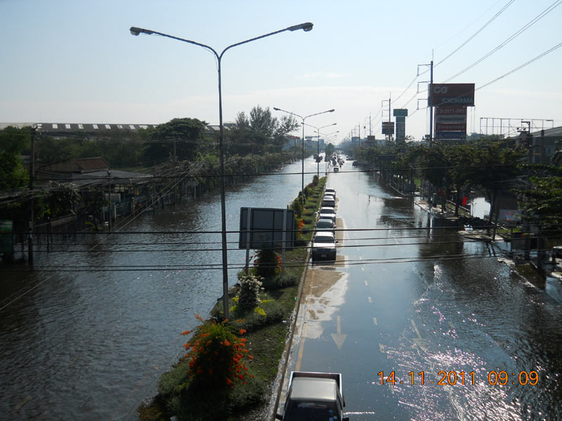 **** UPDATE **** ล่าสุด วันที่ 17 พฤศจิกายน 2554 เวลา 12.00 (เที่ยงวัน) วัดระดับน้ำสูงสุดตรงหน้าสถาบันการันตีพระ วัดได้ประมาณ 25-30 เซ็นติเมตร รถเล็กสามารถใช้ได้แล้วนะครับ
