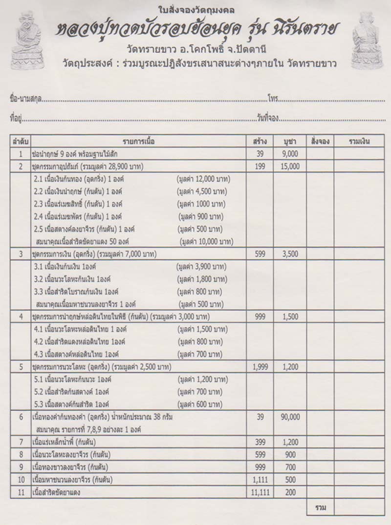 ท่านที่ประสงค์ให้จัดส่งใบจอง และพระเครื่องทางไปรษณีย์ กรุณาเพิ่มค่าจัดส่งครั้งละ 100