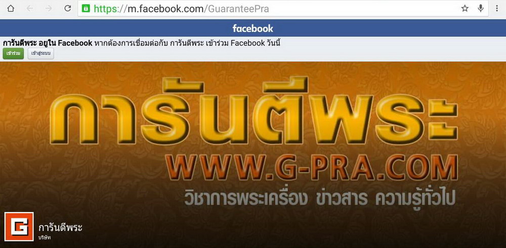 - ท่านสมาชิกที่ใช้ facebook เป็นประจำอยู่แล้ว สามารถเชื่อมต่อกับ facebook การันตีพระได้เลย ท่านก็จะได้ข่าวสารทั้งหมดอีกช่องทางหนึ่งโดยสะดวกสบาย โดยไม่เสียค่าใช้จ่ายใดๆ