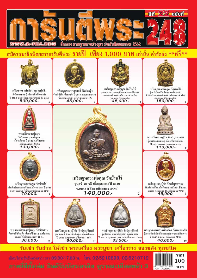 - ถ้าหากท่านสมาชิกประสงค์จะจองพระเครื่องในนิตยสารการันตีพระ ก่อนบุคคลทั่วไป หรือจองพระเครื่องในราคาถูกพิเศษ ท่านสมาชิกสามารถสมัครเป็นสมาชิกพัฒนาเว็บไซต์ได้ ซึ่งท่านจะได้สิทธิ์จองพระเครื่องราคาถูกพิเศษในวันจองพิเศษได้ ตามรายละเอียดในกระทู้นี้ค่ะ http://www.g-pra.com/information/show.php?Category=info3&No=1146