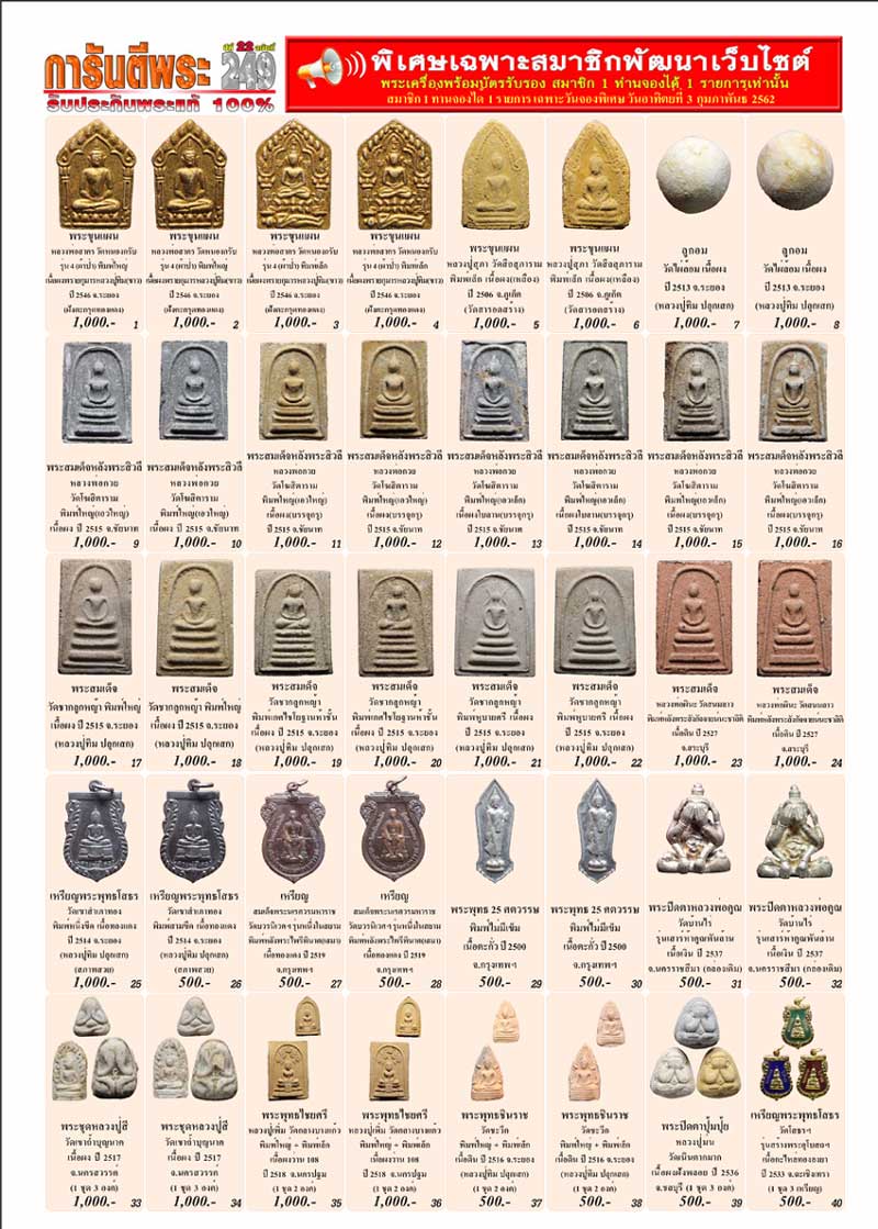 -ทางเว็บไซต์การันตีพระ ต้องขอขอบพระคุณท่านสมาชิกเป็นอย่างสูง ที่ได้กรุณาสมัครเป็นสมาชิกพัฒนาเว็บไซต์ฯ ในอัตรา 300 บาทต่อปี ตามกระทู้นี้ http://www.g-pra.com/information/show.php?Category=info1&No=1146