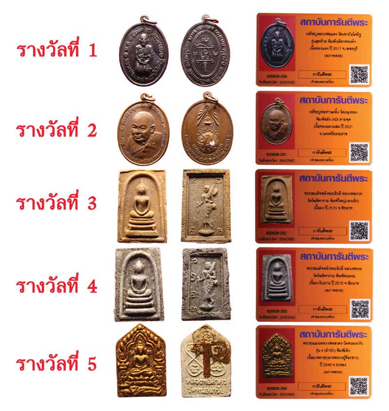 - เพื่อแทนคำขอบคุณนี้ ทางเว็บไซต์ฯ ขอมอบพระเครื่องพร้อมบัตรรับรอง QR Code จำนวน 5 รางวัลประจำเดือน ก.ย 62 นี้ให้กับท่านสมาชิกฯ โดยทางเว็บไซต์ฯจะจับสลากจากรายชื่อท่านสมาชิกพัฒนาเว็บไซต์ฯทุกท่าน ในวันศุกร์ที่ 4 ต.ค 62 และ จะประกาศรายชื่อผู้ได้รับรางวัล ที่หน้าเว็บไซต์ฯในวันเสาร์ที่ 5 ต.ค 62 โดยท่านสมาชิกสามารถรับรางวัลได้ที่สถาบันการันตีพระ ชั้น 5 หรือ โทรแจ้งให้จัดส่งทางไปรษณีย์ได้ที่เบอร์ 02-551-2086 ( ค่าจัดส่ง 100 บาท )