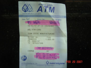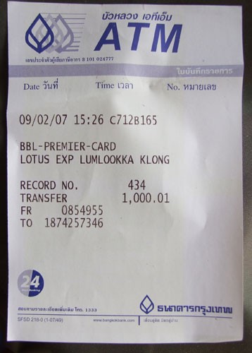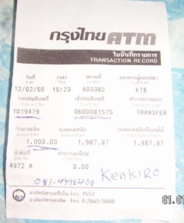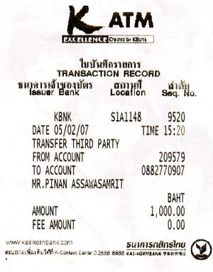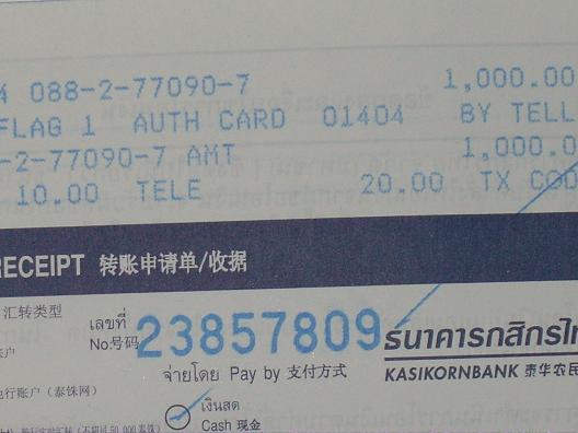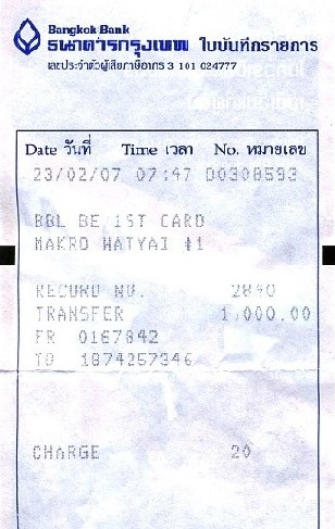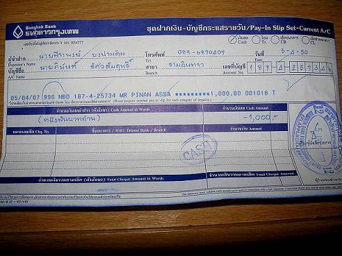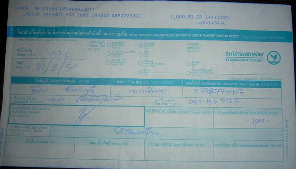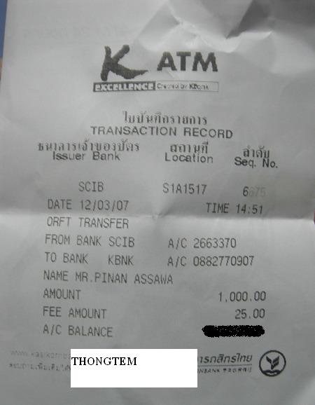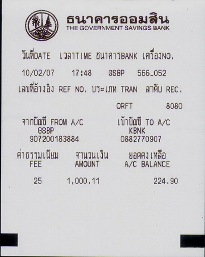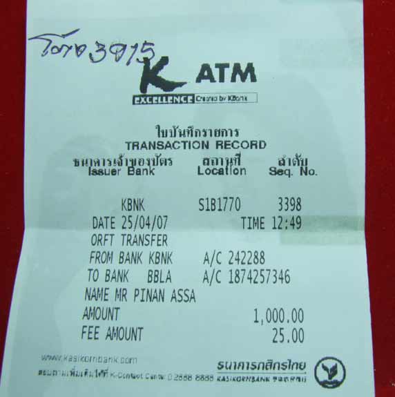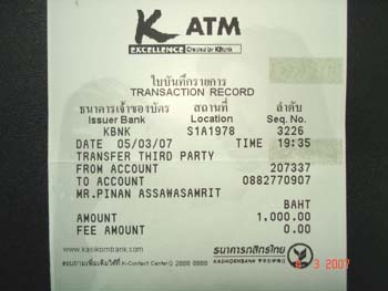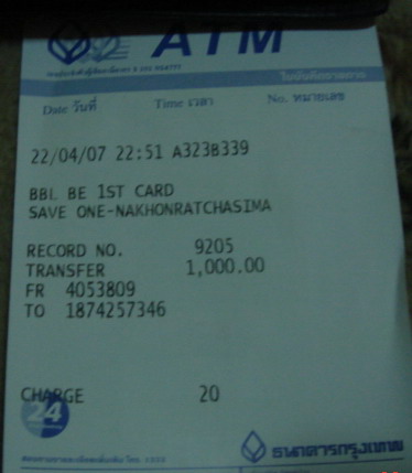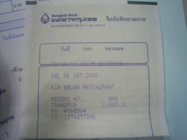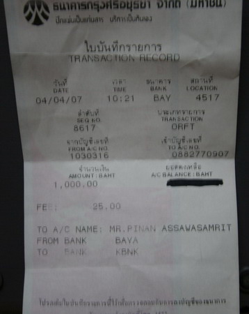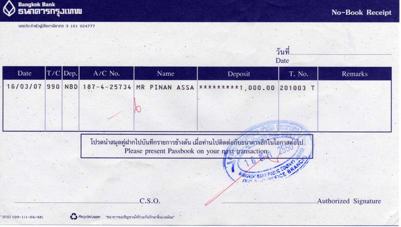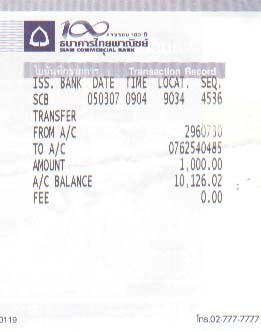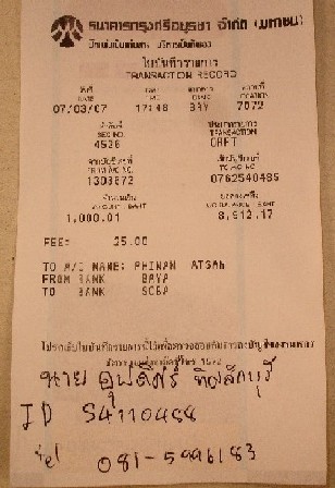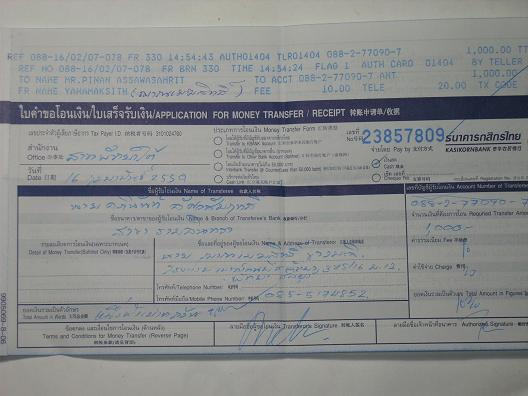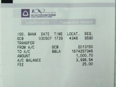 โอนเงินค่าธรรมเนียมเข้าธนาคารกรุงเทพฯ 1,000.09 บาท และได้ Fax สำเนาไปให้แล้วครับ
