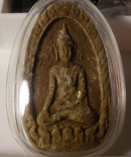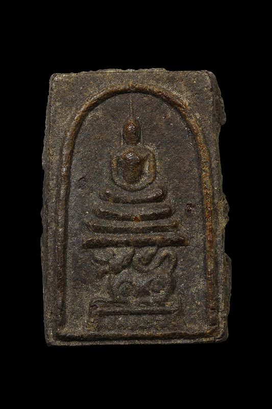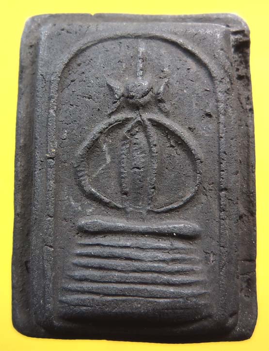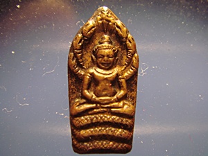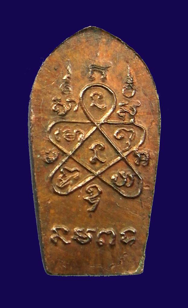 พระนาคปรกใบมะขาม เนื้อทองแดงขนาดประมาณ ความสูง 1.3 ซม. ส่วนกว้างสุด 0.7 ซม. ด้านหน้าเป็นรูปพระพุทธปางนาคปรกสามชั้น. ด้านหลังเป็นยันต์พระพุทธเจ้าห้าพระองค์นะโมพุทธายะ มีนะอยู่กึ่งกลางยันต์ อีกตัวหนึ่งแซมข้างด้านบนด้วยอิ สวา สุ ประดับข้างด้านล่างด้วยมะอะอุ และใต้ยันต์เป็นนะมะพะทะ. รูปลักษณ์ด้านหน้าของพระปรกใบมะขามนี้ คล้ายคลึงกับพระนาคปรกใบมะขามของพระราชสังวราภิมณฑ์(หลวงปู่โต๊ะ อินทสุวัณโณ) วัดประดู่ฉิมพลี กรุงเทพฯ(ที่สร้างในภายหลัง)มาก แต่พระของหลวงปู่โต๊ะมีความหนาและขนาดเขื่องกว่าเล็กน้อย ด้วยความประพิมพ์ประพายใกล้เคียงกันจึงชวนให้สันนิษฐานว่า ช่างแกะแม่พิมพ์คงเป็นบุคคลเดียวกัน