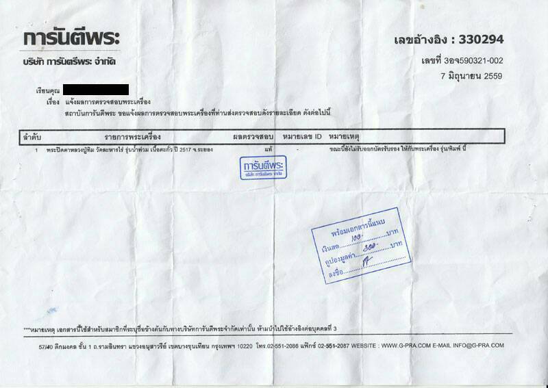 ของผมรุ่นนี้ได้นำขึ้นคอบูชาตั้งแต่สมัยยังไม่เคยเล่นพระเครื่อง (ได้จากหลวงพี่จังหวัดระยอง ปี2535 ตั้งแต่สมัยหลวงปู่ยังไม่ดังมาก เหรียญปรกไตรมาสราคา 800 บาท, เสมาราคาบูชา 2,000 บาท, เจริญพรบน 3,000 บาท ซึ่งพระปิดตาน้ำท่วมสามารถแบ่งให้น้องๆ หรือลุกศิษย์ได้เลยโดยไม่ต้องเสียดาย) แต่เคยส่งไปออกบัตรจีพระ บอกว่าไม่แท้แต่ก็ยังเก็บบูชาอยู่เหมือนเดิมไม่เปลี่ยน.