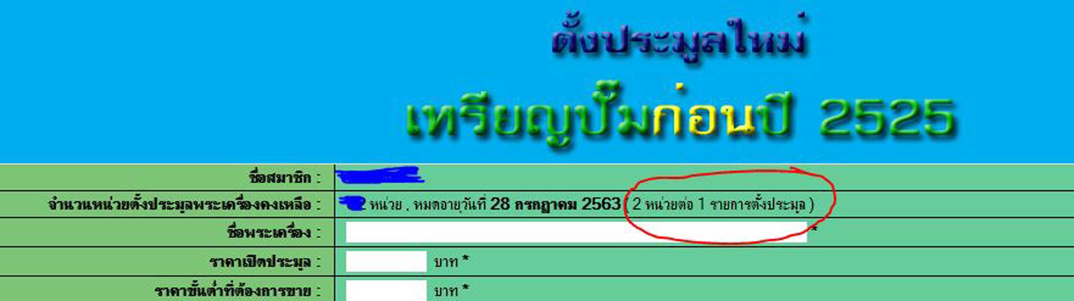 - เพื่อส่งเสริมการขายให้กับท่านสมาชิกฯ ในวันที่ 14 ก.พ.63 นี้ ตั้งแต่เวลา 00.00-24.00 น. ( วันเดียวเท่านั้น ) ท่านสมาชิกที่เติมบัตรฯตั้งประมูลในช่วงเวลานี้ จะได้รับหน่วยตั้งประมูลเพิ่มจากเดิมอีก 1 เท่า ตัวอย่างเช่น ท่านเติมบัตรตั้งประมูล 100 บาท ปกติได้ 10 หน่วยตั้งประมูล ก็จะได้เป็น 20 หน่วยตั้งประมูล / ท่านเติมบัตรตั้งประมูล 1000 บาท ปกติได้ 100 หน่วยตั้งประมูล ก็จะได้เป็น 200 หน่วยตั้งประมูล