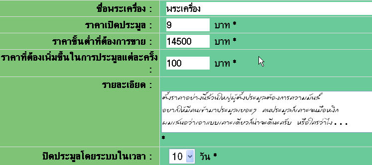 -ในการประมูลผู้ตั้งประมูลสามารถให้ข้อมูลเพื่อส่งเสริมการประมูลได้ในหัวข้อ-เพิ่มเติมข้อมูล-โดยผู้ตั้งประมูล และ ในหัวข้อเดียวกันนี้ผู้ตั้งประมูลสามารถปิดกระทู้หรือการประมูล อันเนื่องมาจากมีการผิดพลาดในการตั้งประมูลได้ หรือ พระองค์นั้นๆต้องตรวจสอบข้อมูลเพิ่มเติม