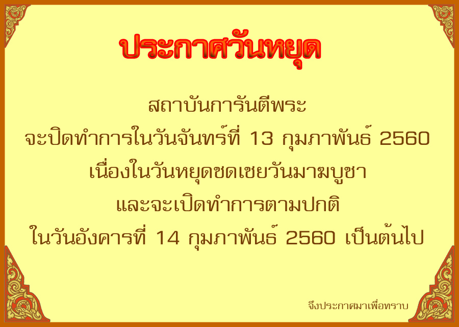 ประกาศวันหยุดชดเชยวันมาฆบูชา 2560