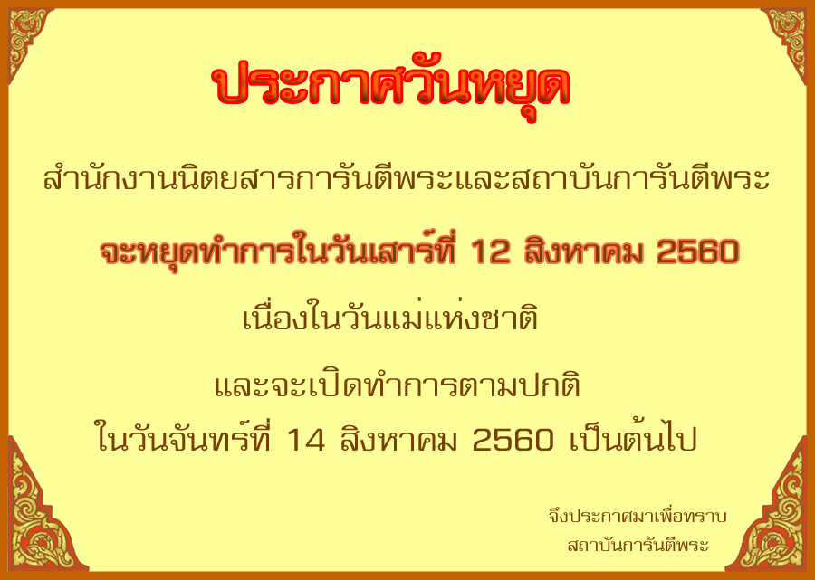 ประกาศวันหยุด 12 สิงหาคม 2560