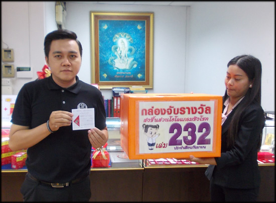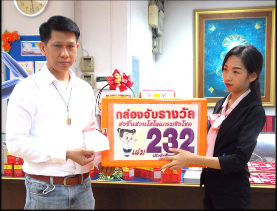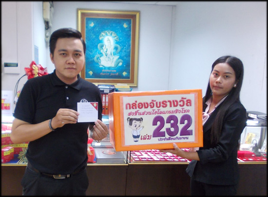 พร้อมต้องขอขอบพระคุณท่านสมาชิกที่ให้เกียรติเป็นผู้จับรางวัลในครั้งนี้ด้วยนะครับ ขอบพระคุณครับ